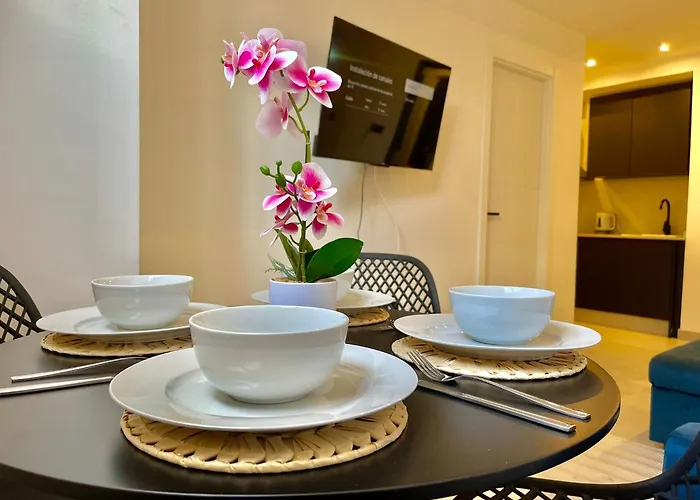 Along with self-catering amenities like an equipped kitchenette, Palm Beach Rentals apartment also offers a dining area. You can drive to Alicante airport in 29 minutes.